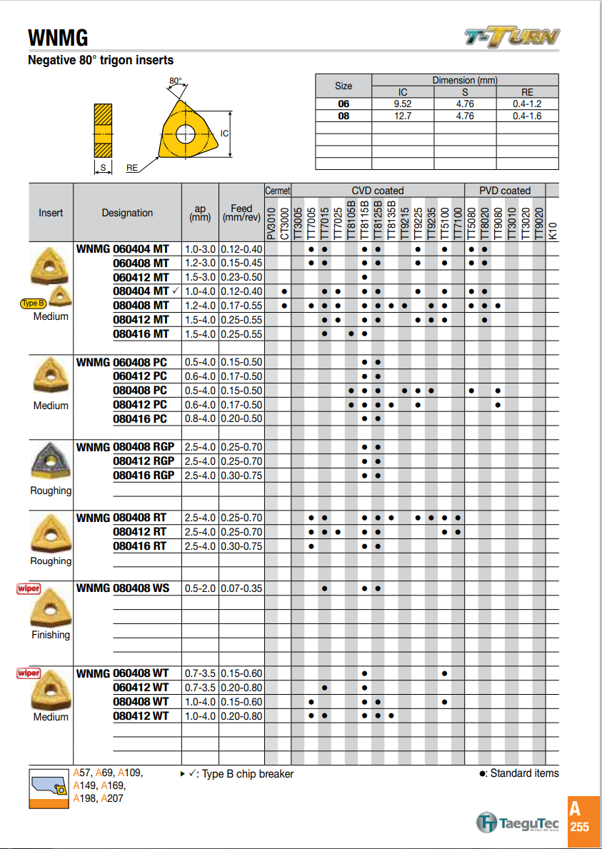 产品大全 刀具 车刀 WNMG 080408 MT TT8125B